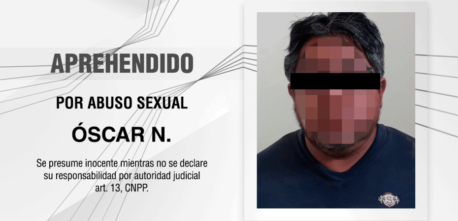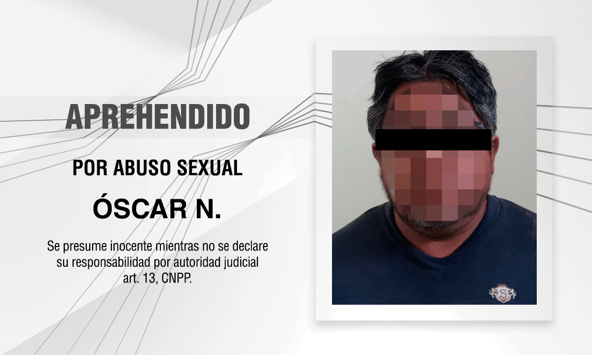 La Procuraduría General de Justicia del Estado (PGJE), a través de las labores de campo realizadas por los oficiales de la Policía de Investigación y dando seguimiento a la indagatoria respectiva, logró la captura de Óscar N., quien contaba con una orden de aprehensión por el delito de abuso sexual.