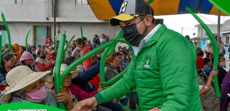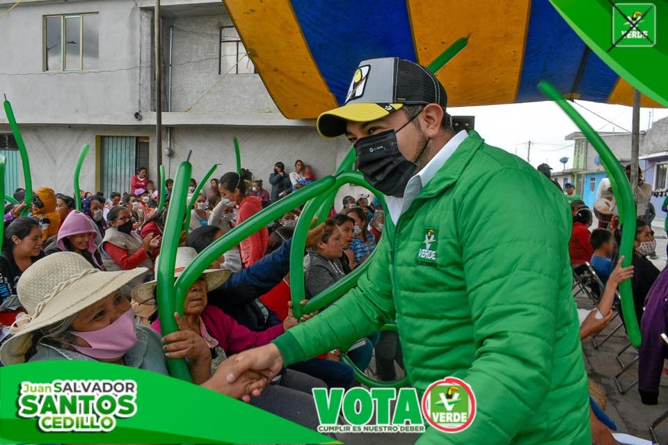 El candidato a alcalde municipal de Huamantla por el Partido Verde Ecologista de México (PVEM) , Salvador Santos Cedillo, durante el cierre de campaña que realizo, este día, por las comunidades de Lázaro Cárdenas y Pueblo de la Cruz, planteo los proyectos que tiene para cada una de las poblaciones, acciones que permitirán brindar mejores oportunidades de vida para todos.
