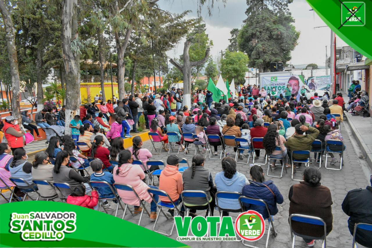 Mas tarde, Salvador Santos Cedillo, se dirigió a la población de Zaragoza, donde se reunió con cientos de vecinos para dar a conocer su plan de trabajo, que considera direccionar obras y acciones a las 39 comunidades, además de otorgar apoyos a las familias que más lo necesitan.