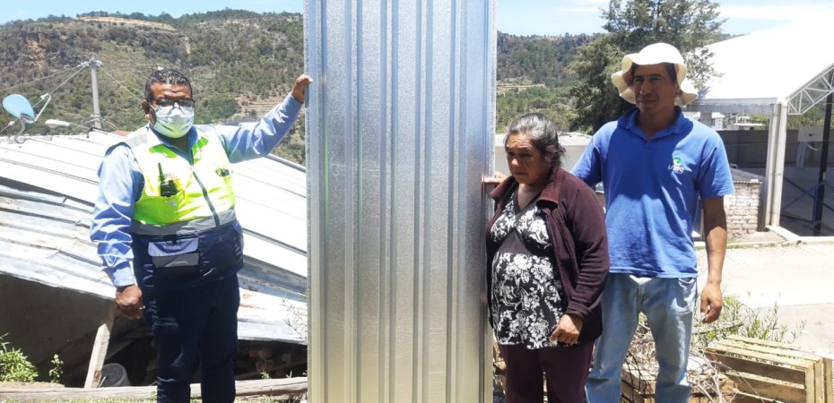 El Coordinador Estatal de Protección Civil explicó que con la entrega de láminas las familias damnificadas podrán cubrir espacios de sus viviendas que resultaron con daños a causa de la precipitación pluvial.