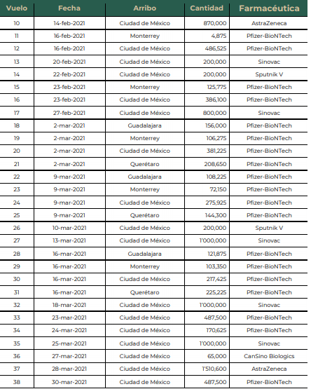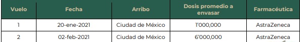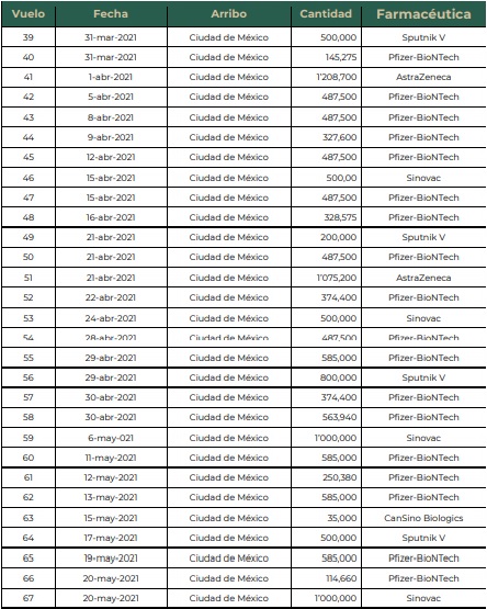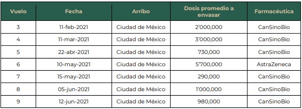 Estos 585 mil biológicos, sumados a los anteriores lotes, hacen un total de 18 millones 442 mil 905 dosis recibidas de esta farmacéutica.
