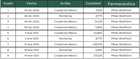 Este miércoles arribaron a México 585 mil vacunas de la farmacéutica Pfizer-BioNTech.