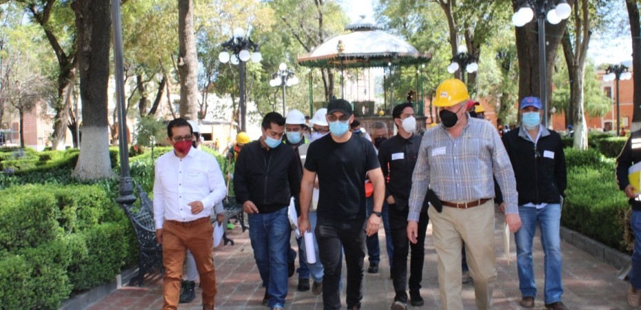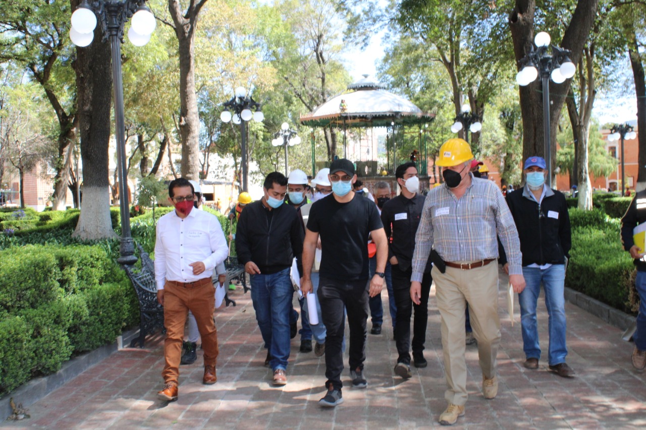 Mayer Falcón recorrió las obras que llevan un avance de 40.15% en la renovación de la Plaza de la Constitución; del 21.63% en la renovación de la Plaza Xicohténcatl y 13.60% en la construcción del Mercado de Artesanías, por lo que la conclusión de las obras se prevé a inicios de septiembre.