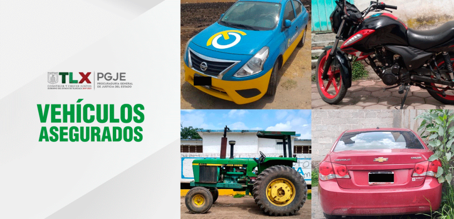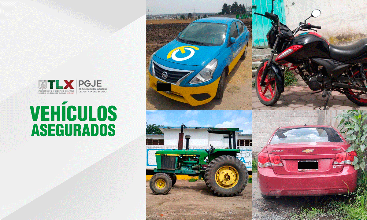 El trabajo de la Policía de Investigación adscrita a la Procuraduría General de Justicia del Estado (PGJE), permitió asegurar -en momentos distintos- un tractor, una motocicleta y dos vehículos que contaban con reporte de robo, por lo que fueron puestos a disposición del Agente del Ministerio Público para las indagatorias correspondientes.