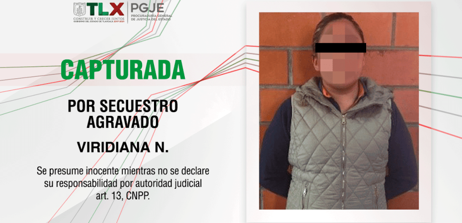 La atención a delitos de alto impacto a cargo de la Fiscalía Especial de Combate al Secuestro (FECS) adscrita a la Procuraduría General de Justicia del Estado (PGJE), permitió la captura de Viridiana N., por su probable participación en el delito de secuestro agravado cometido en contra de una persona del sexo masculino ocurrido en junio del año en curso.