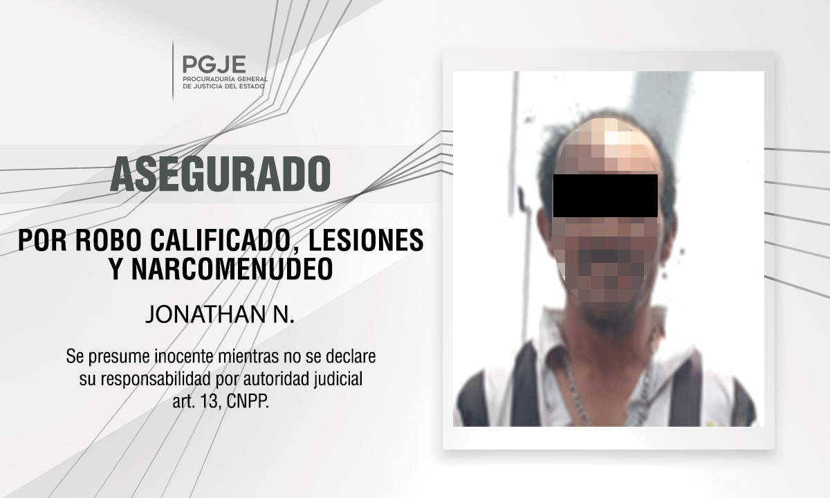 Por lo anterior, fue puesto a disposición del Agente del Ministerio Público por los delitos de robo calificado, lesiones calificadas y delitos contra la salud en su modalidad de narcomenudeo.