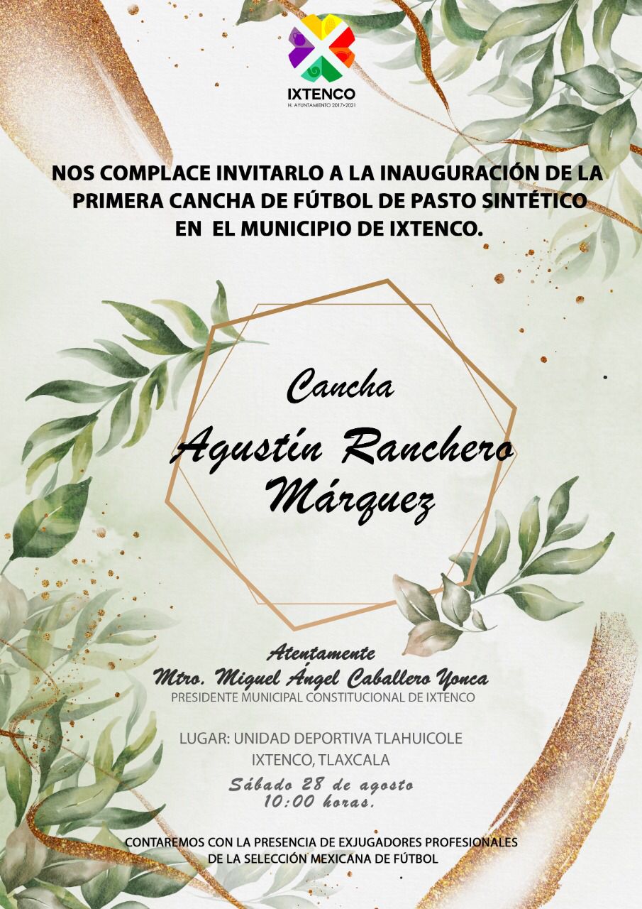 Johan Rodríguez, el “Chispa Suárez y Sergio Vázquez exjugadores profesionales de fútbol, arribarán a Ixtenco este fin de semana para inaugurar en conjunto con el edil de Ixtenco Miguel Ángel Caballero Yonca la primera cancha semi profesional de pasto sintético en la zona.