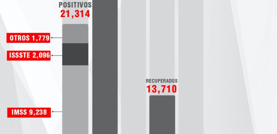 Del total de casos positivos, ocho mil 201 se han registrado en la SESA, nueve mil 238 en el IMSS, dos mil 96 en el Issste y mil 779 en otros espacios médicos.