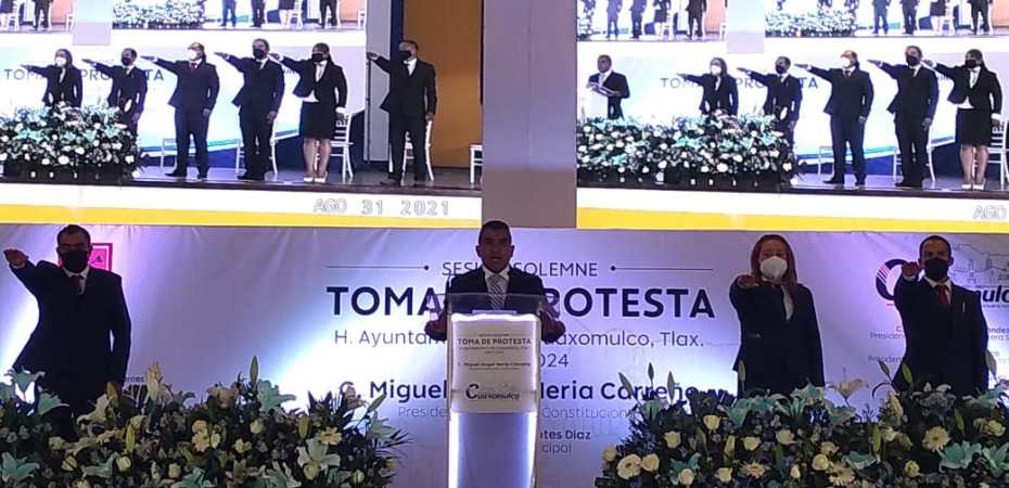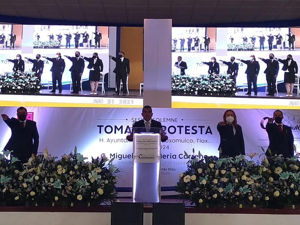 En un evento en el que se tomaron todas las medidas sanitarias, para cuidar de la salud de los asistentes, se realizó la toma de protesta del presidente municipal que dirigirá la administración por tres años, del 31 de agosto del 2021 al 30 de agosto del 2024, así como, a todos los miembros del cuerpo edilicio, que están conformado por la síndico municipal, los regidores y los presidentes de comunidad, pues todos ellos en conjunto buscaran que las condiciones del municipio de Cuaxomulco sean las más favorables para sus habitantes.