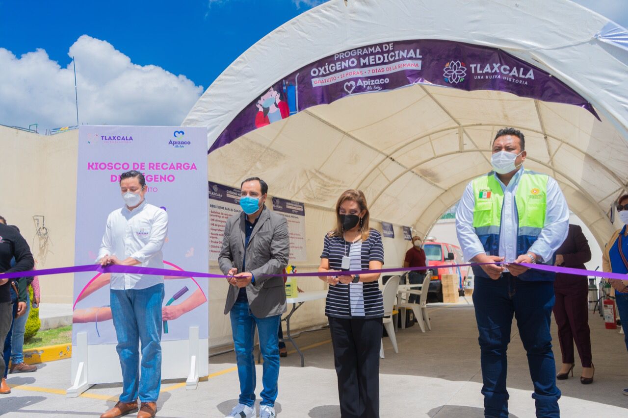 Este día, la Gobernadora del Estado, Lorena Cuellar Cisneros, visitó la ciudad rielera para inaugurar el Kiosco de Recarga de Oxígeno Gratuito, en compañía del Presidente Municipal de Apizaco, Pablo Badillo Sánchez