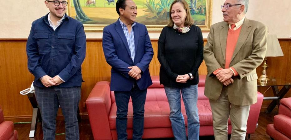 En este marco, se realizó un productivo encuentro entre el alcalde y Antonio Martínez Velázquez; Director General del Instituto Tlaxcalteca de la Cultura (ITC), Helena Hernández de Valle-Arizpe; Coordinadora de Programación Cultural en la sede Tlaxcala y José Vicente de la Rosa; Delegado del Instituto Nacional de Antropología e Historia (INAH) en Tlaxcala.