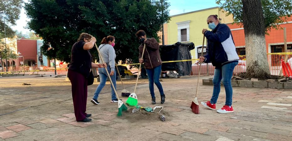 Añadieron su esfuerzo al de 33 trabajadores de limpia y recolección, así como a 16 de parques y jardines, para realizar una ardua tarea en las inmediaciones de la remodelada Plaza de la Constitución del Centro Histórico.