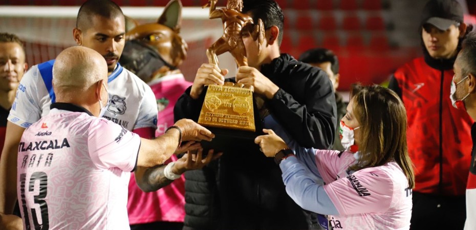 Los acreedores del trofeo fueron los jugadores del equipo visitante al anotar dos goles durante el segundo tiempo a los anfitriones, por lo que recibieron de manos de la mandataria estatal la estatuilla del legendario guerrero tlaxcalteca, tallado en madera de cedro creación del escultor oriundo de Tizatlán, Arcelio Paredes Reyes.