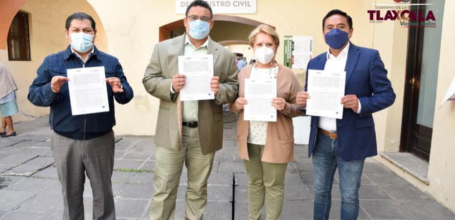 En acuerdo fue suscrito por el presidente municipal de Tlaxcala, Jorge Corichi; la síndica municipal, Rosalba Salas Jaramillo; Efrén Ordoñez Mendoza, tesorero municipal y Víctor Hugo Mena Hernández, director de la Coordinación del Registro Civil del Estado de Tlaxcala.