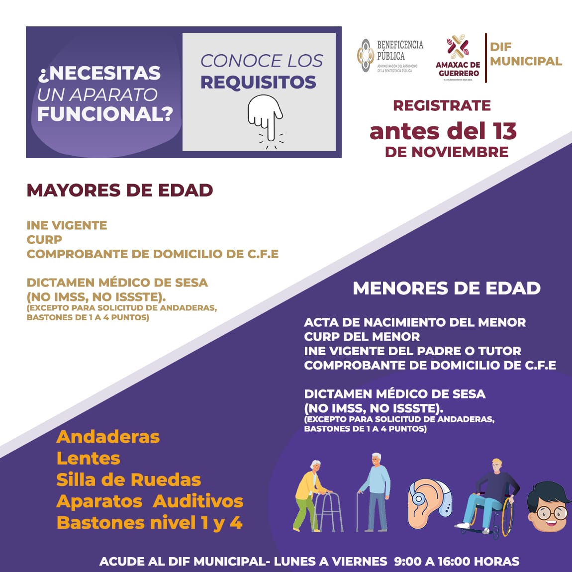 Para atender las necesidades de la población con discapacidad en el municipio de Amaxac de Guerrero, el Sistema Municipal DIF, anuncia la apertura de convocatoria para adquirir aparatos funcionales a adultos mayores o pacientes que tienen dificultad para moverse, con el fin de que puedan realizar con mayor facilidad sus actividades cotidianas.