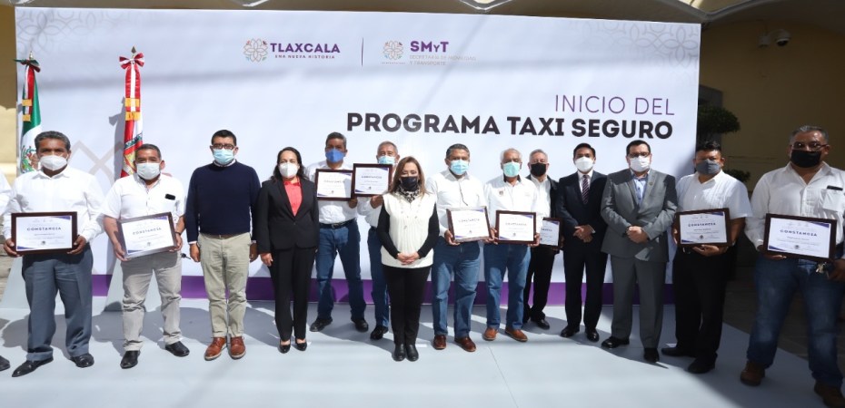 La gobernadora Lorena Cuéllar Cisneros encabezó el arranque del programa piloto denominado “Taxi Seguro” que tiene como objetivo brindar un medio de transporte de confianza a la ciudadanía y en especial a las mujeres, a través de la aplicación “Tlaxi” que cuenta con geolocalización en tiempo real y un botón de pánico conectado al C4.
