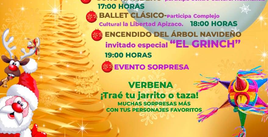 El momento cumbre, el encendido del árbol navideño, se tiene programado para la siete de la noche y estará amenizado por un personaje característico de la temporada, el Grinch, quien invitará a los presentes a participar en la verbena y el evento sorpresa posterior al encendido del árbol.