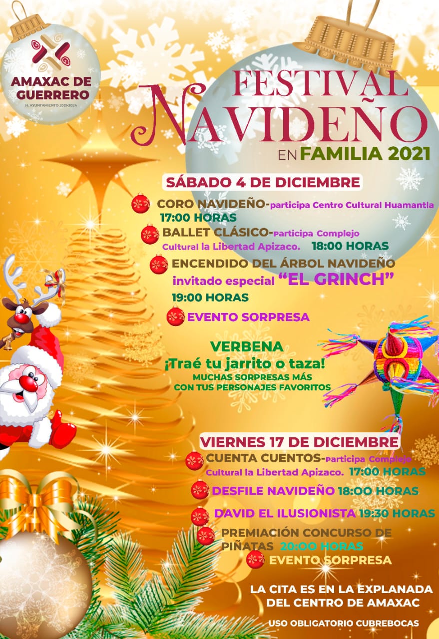 El espíritu de la navidad ha llegado al lugar donde se bifurca el agua; el Ayuntamiento de Amaxac de Guerrero anunció que el próximo sábado cuatro de diciembre, dará inicio el “Festival Navideño en Familia”, que ha preparado para el disfrute de vecinos y visitantes.