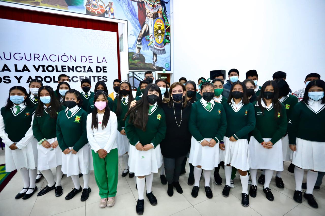 La gobernadora Lorena Cuéllar Cisneros puso en marcha la campaña contra la violencia de niñas, niños y adolescentes en el municipio de Huamantla, estrategia que tiene como objetivo principal crear entornos seguros y estables para este sector de la población.
