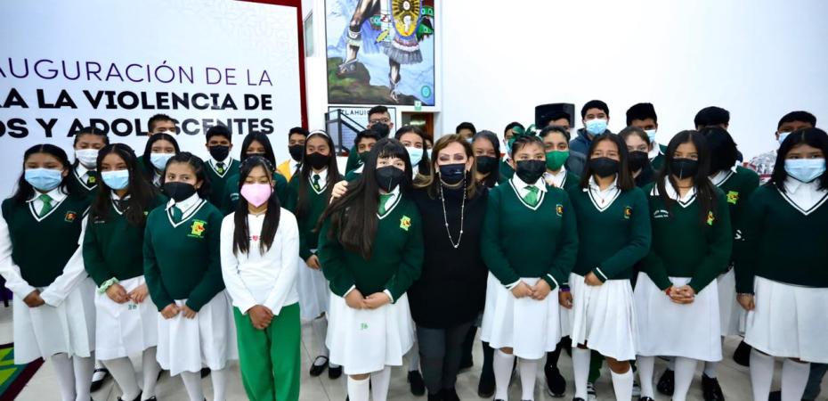 La gobernadora Lorena Cuéllar Cisneros puso en marcha la campaña contra la violencia de niñas, niños y adolescentes en el municipio de Huamantla, estrategia que tiene como objetivo principal crear entornos seguros y estables para este sector de la población.