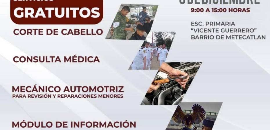 Otro de los servicios, que igualmente se ofrecerá a la población será el de cortes de cabello, tanto para adultos como para niños; el tercero de los servicios disponibles será el de revisión mecánica, y en su caso reparaciones menores a automóviles, también por parte del personal militar.