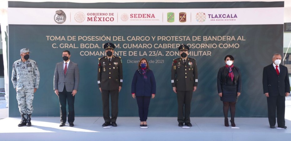 La gobernadora Lorena Cuéllar Cisneros asistió a la ceremonia de la toma de posesión y protesta de bandera del General de Brigada Diplomado de Estado Mayor, Gumaro Cabrera Osornio, como nuevo comandante de la 23 Zona Militar, ubicada en el municipio de Panotla.