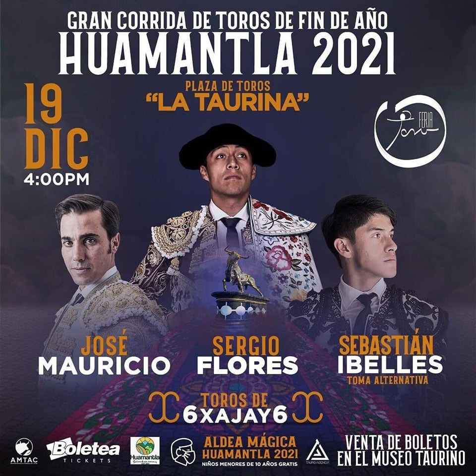 El pasado lunes 6 de diciembre se presentó formalmente el cartel de la corrida que se llevará a cabo el 19 de diciembre dentro de las actividades que se realizaran en el municipio de Huamantla en la festividad denominada Aldea Navideña, el presídium lo conformo el alcalde de Huamantla Salvador Santos acompañado por el nuevo director del instituto tlaxcalteca de desarrollo taurino el matador José Luis Angelino, el matador Joaquín Angelino de Arriaga director de la parte taurina en Huamantla, el empresario José Luis Alatorre de Feria Toro, las espadas en el cartel el matador Sergio Flores quien ya se encuentra recuperado de las lesiones sufridas anteriormente y el toricantano Sebastián Ibelles quien menciono toma la alternativa con cerca de 40 novilladas, el matador José Mauricio ausente por causas de fuerza mayor, la ganadería a lidiar será Xajay.