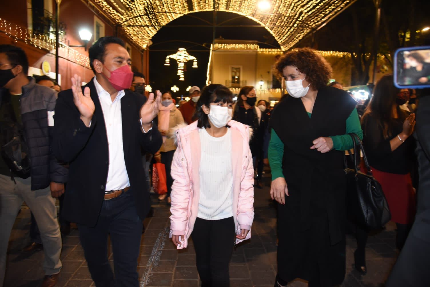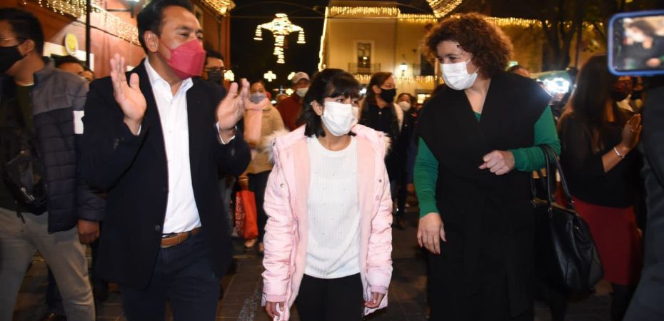 El alcalde de la Ciudad de Tlaxcala, Jorge Corochi, en compañía de la directora de los programas de bienestar social del Gobierno del Estado, María Fernanda Espinosa de los Monteros Cuéllar y la secretaría de turismo estatal, Josefina Rodríguez Zamora, encabezó el encendido de luces navideñas en la Plaza de la Constitución y dio inicio al “Festival Navideño en Tlaxcala Capital 2021”