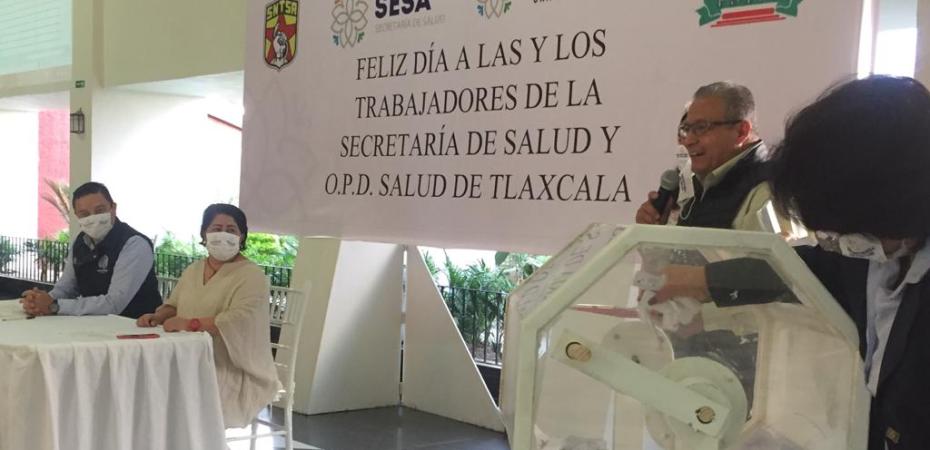 Este anuncio lo realizó el secretario de Salud, Rigoberto Zamudio Meneses, ante trabajadores representantes de las diferentes unidades que conforman la Secretaría de Salud (SESA) y la dirigente del Sindicato Nacional de Trabajadores de la Secretaría de Salud (Sntsa), sección 27, Blanca Águila, durante la rifa de obsequios que se desarrolló en el Salón Joaquín Cisneros de la capital tlaxcalteca con motivo del “Día de las y los Trabajadores de la Secretaría de Salud (SESA) y Organismo Público Descentralizado (O.P.D.) Salud de Tlaxcala”.