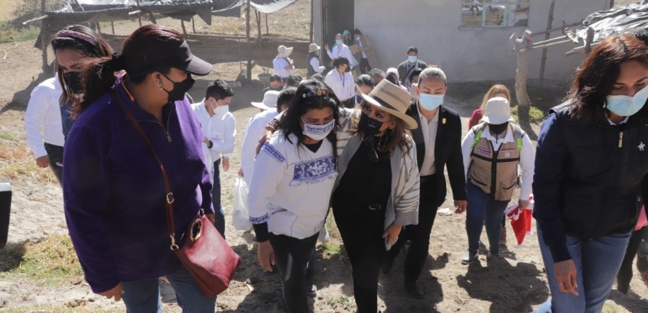 La titular del Ejecutivo local recorrió la ranchería acompañada del secretario de Educación Pública, Homero Meneses Hernández; de la titular del Sepuede, Michaelle Brito Vázquez y del delegado de los Programas para el Desarrollo en Tlaxcala, Carlos Luna Vázquez.