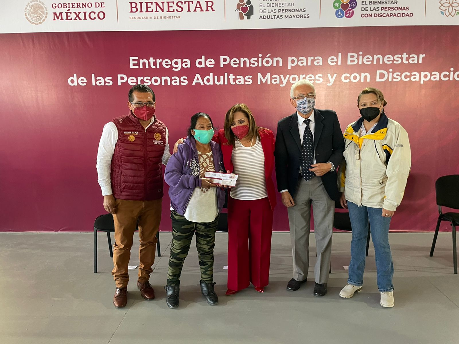 La gobernadora de Tlaxcala, Lorena Cuéllar Cisneros atestiguó la entrega de tarjetas del Programa Pensión para el Bienestar de las Personas Adultas Mayores, gracias al cual cada beneficiario recibirá un apoyo económico bimestral de 3 mil 850 pesos.