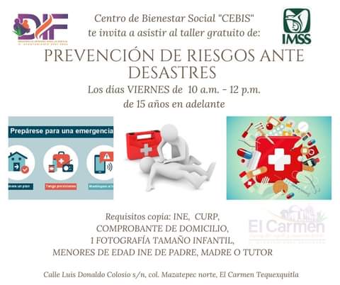 La presidenta municipal de Tequexquitla, Aracely Martínez Cortés en coordinación con el Centro de Bienetar Social (CEBIS), hacen la invitación a pobladores del lugar, a participar en el taller de Prevención de Riesgos ante Desastres.