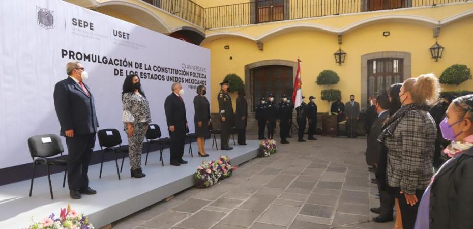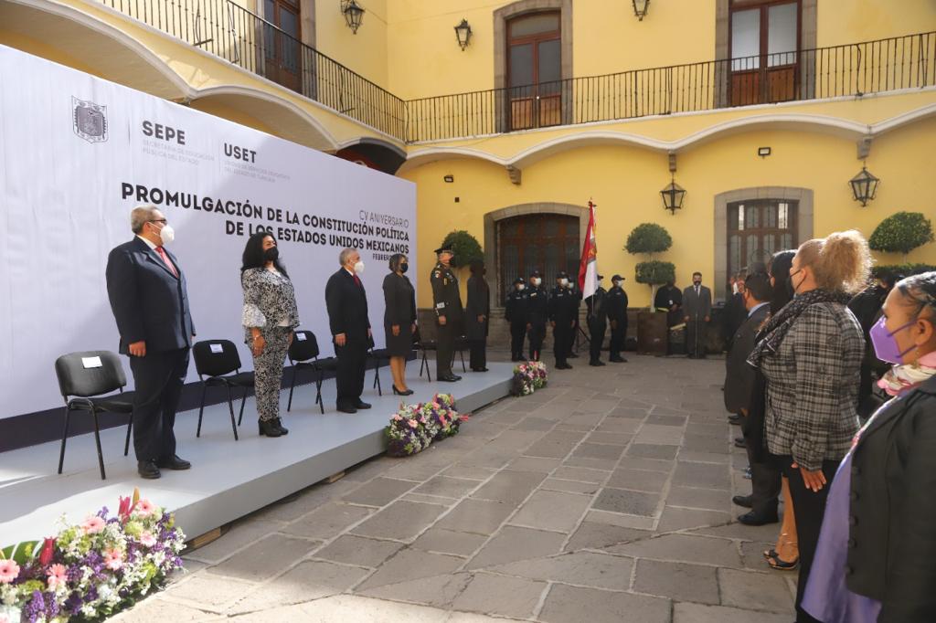 Al mismo tiempo, expusieron que fue el 5 de febrero de 1917 cuando se promulgó la Constitución Política del país y hoy es el instrumento jurídico que rige la vida social, política y democrática, pues es considerada a nivel mundial la primera de corte social que dio cauce a las grandes conquistas en materia de educación, reparto agrario y derechos de las clases trabajadoras.