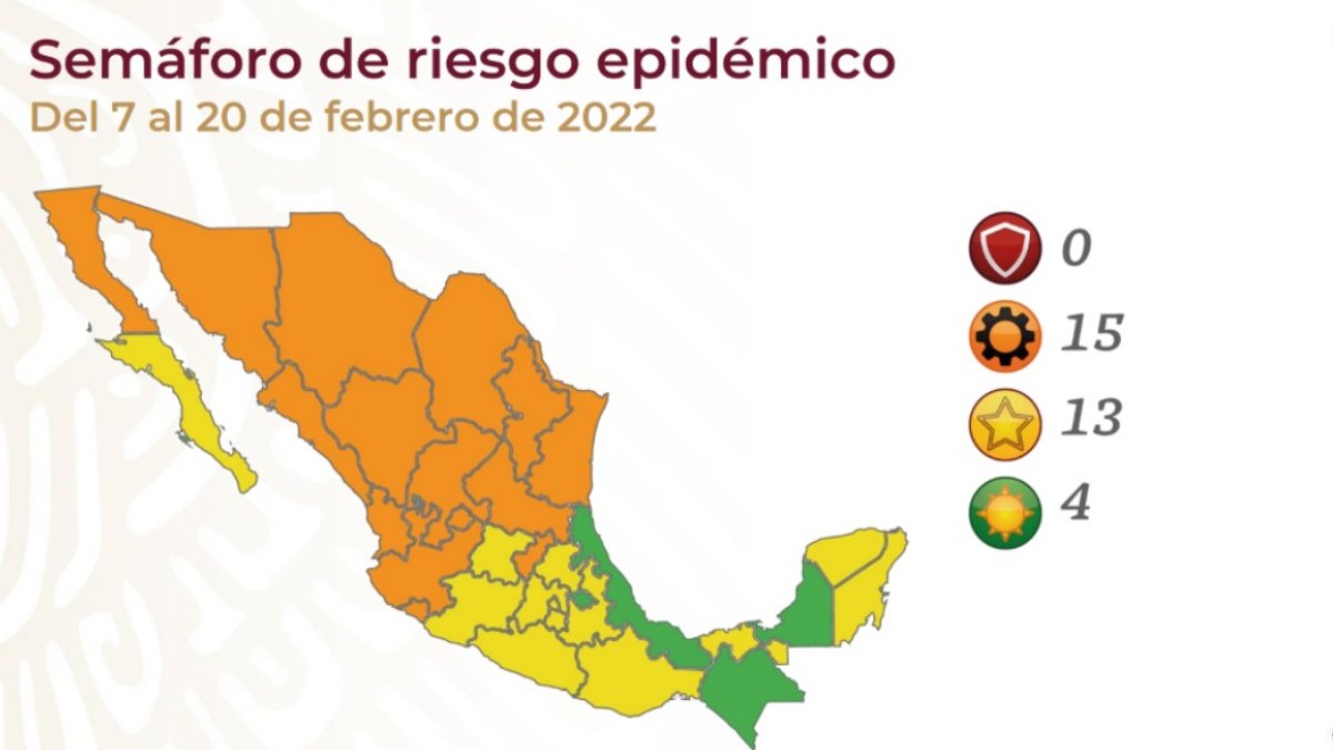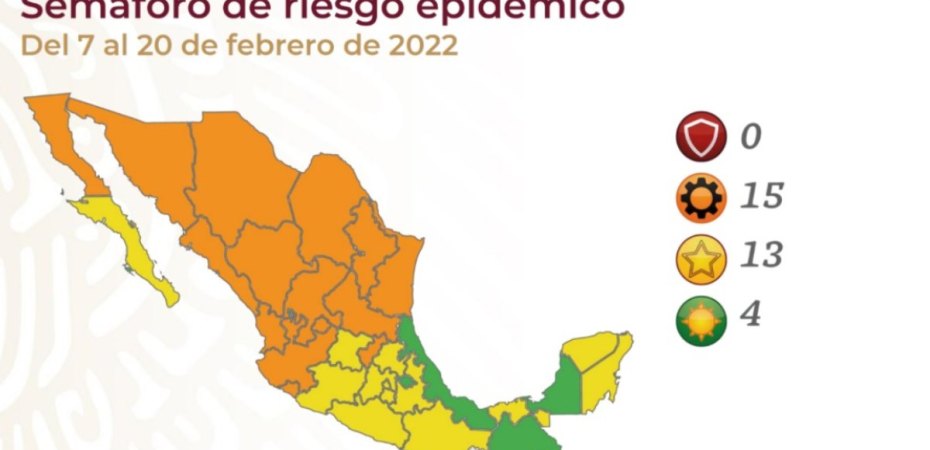 La Secretaría de Salud (Ssa) del Gobierno federal dio a conocer el semáforo de riesgo epidemiológico por COVID-19 para las siguientes dos semanas, del 7 al 20 de febrero.
