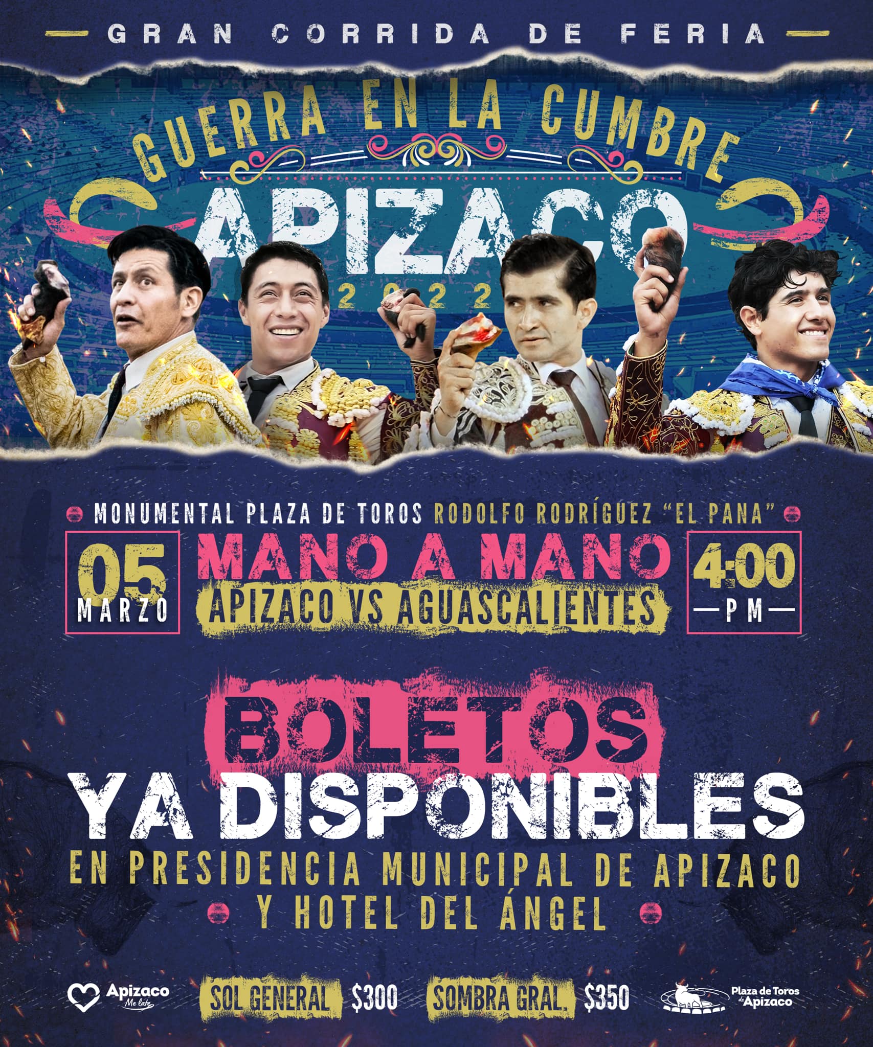 El día de mañana da inicio la «Semana Taurina Apizaquense», organizada por el Ayuntamiento y el matador José Luis Angelino, continuando con la tradición de alternar grandes eventos culturales con festejos taurinos importantes.
