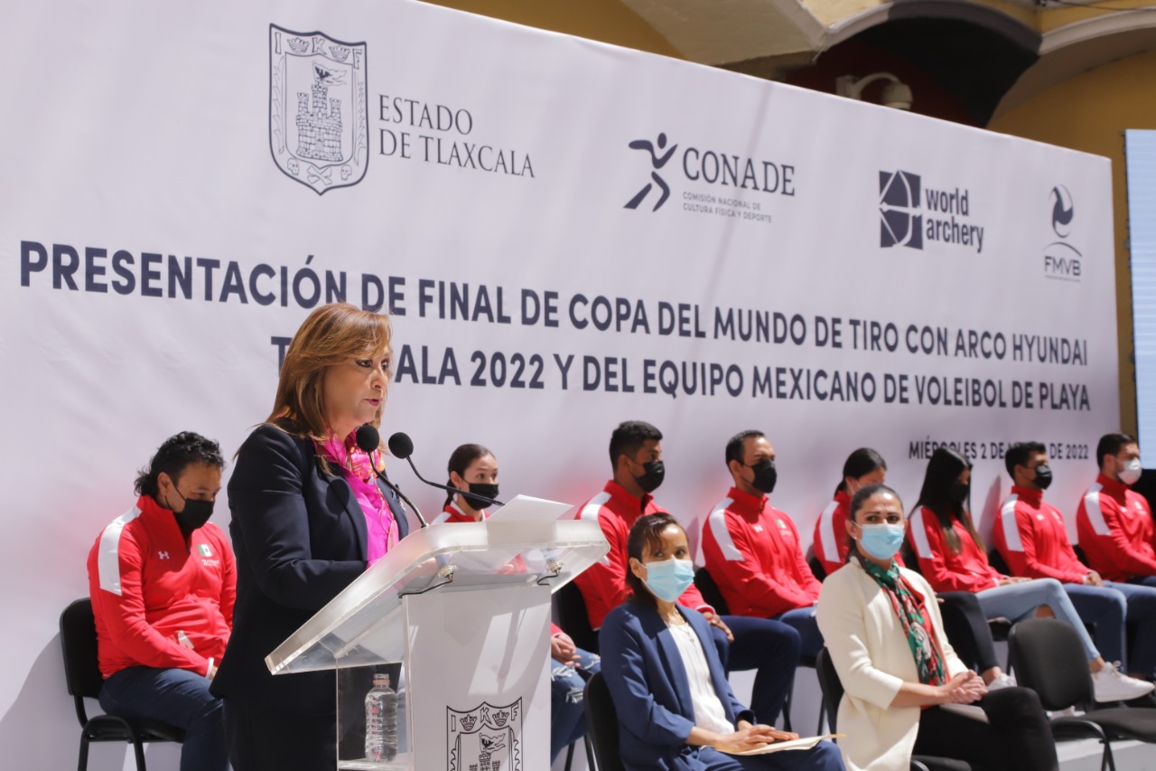 El Gobierno del Estado, en conjunto con la Comisión Nacional de Cultura Física y Deporte (CONADE), presentó la final de la Copa del Mundo de Tiro con Arco Hyundai y a los integrantes del equipo mexicano que participará en el Tour Mundial de Voleibol de Playa, eventos deportivos que tendrán como sede a la entidad tlaxcalteca.