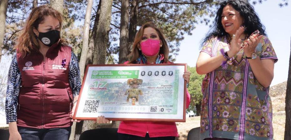 El Gobierno del Estado, en conjunto con la Lotería Nacional, la Secretaría de Cultura del Gobierno de México y el Instituto Nacional de Antropología e Historia (INAH), develó el billete conmemorativo por el Día Internacional de la Mujer en la zona arqueológica de Xochitécatl.