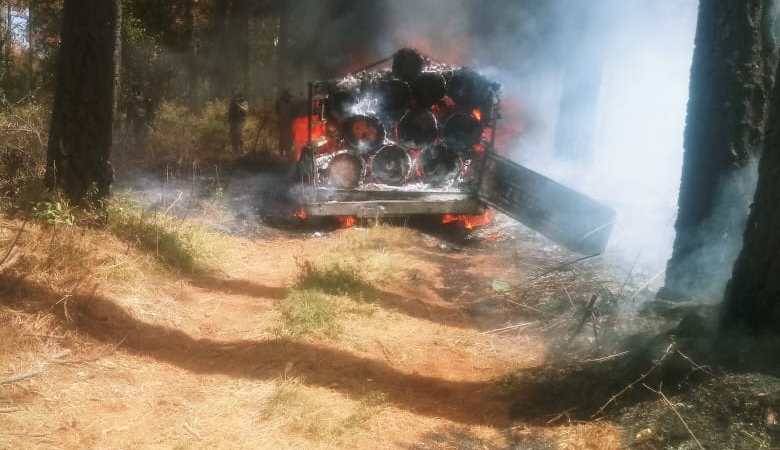 Al estar ante el inicio de un siniestro, elementos de la Policía de Montaña procedieron a la sofocación de las llamas; es así como evitaron la propagación del fuego en la zona y evitaron daños al medio ambiente, para posteriormente asegurar la unidad cargada con material forestal.