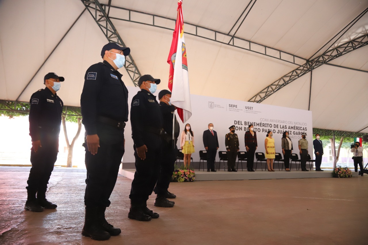En la explanada del Domo Blanco del Centro Expositor de la ciudad capital y acompañada de los representantes de los poderes Judicial y Legislativo, la funcionaria estatal resaltó que Juárez García fue un hombre de principios, de alta calidad moral y ética con gran sentido de honorabilidad, amor y lealtad a la patria, “Benito Juárez fue un gran mexicano, un hombre cabal”.
