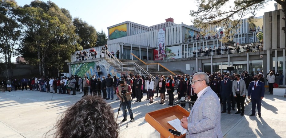 Durante el homenaje realizado en la explanada “Alonso de Escalona”, se explicó que esta estrategia coincide con los planes y programas 2022 del Gobierno de México y para su puesta en marcha realizarán asambleas escolares, diálogos y se documentarán opiniones a través del uso de distintas tecnologías de la comunicación y la información (TIC’s).