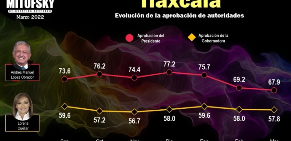 “Para López Obrador el haber bajado en Tlaxcala no lo hace que esté mal evaluado, pues es el décimo estado en la aprobación del presidente y tiene claramente 8 o hasta 9 puntos arriba de su promedio nacional, la baja en los tres últimos meses consecutivos no lo posiciona en una mala evaluación”, puntualizó el presidente de la casa encuestadora, Roy Campos.