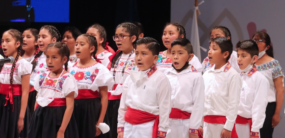 También participó el coro de niñas y niños de la escuela primaria indígena bilingüe “Maxixcatzin”, mediante la interpretación del Himno a Tlaxcala cantado en náhuatl.