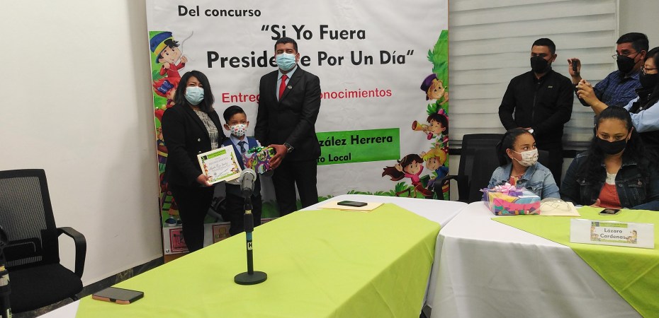 El Diputado Jaciel González Herrera, hizo entrega de reconocimientos a niñas y niños del Distrito Local III, que resultaron ganadores del concurso “Si yo Fuera Presidente por un Día” en la sede del Congreso de Tlaxcala.