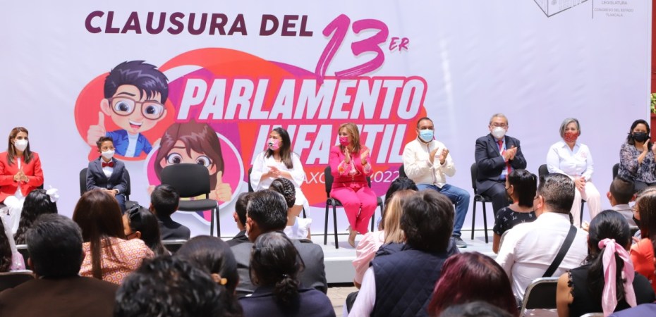 La gobernadora Lorena Cuéllar Cisneros, clausuró los trabajos del décimo tercer Parlamento Infantil Tlaxcala 2022 de la LXIV Legislatura del Congreso del Estado, durante la ceremonia entregó reconocimientos a los 25 niños y niñas participantes.