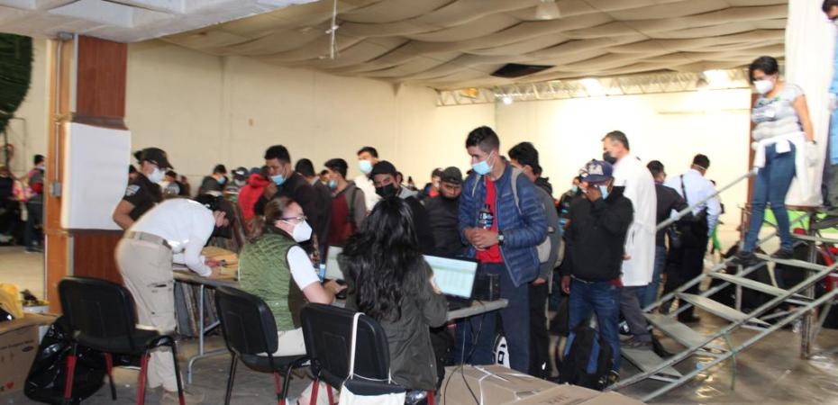 En coordinación con autoridades del Instituto Nacional de Migración (INM), la delegación de la Secretaría de Bienestar, la Coordinación Estatal de Protección Civil (CEPC) y del municipio de Ixtacuixtla, se registraron los datos de cada uno de los migrantes, mientras que el personal médico de SESA estableció un consultorio portátil para valoración, análisis de signos de saturación de sangre, temperatura, revisión general a mujeres y hombres adultos, así como infantes.
