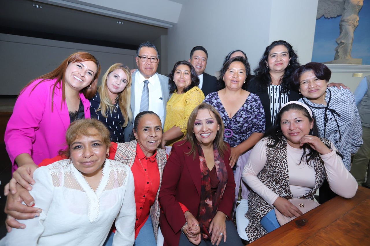 La gobernadora Lorena Cuéllar Cisneros se reunió con madres trabajadoras del Sindicato de Trabajadores Administrativos y de Intendencia del Colegio de Bachilleres del Estado de Tlaxcala (Staicobat), a quienes agradeció la labor que desempeñan en cada uno de los planteles y las distintas áreas que integran el subsistema.