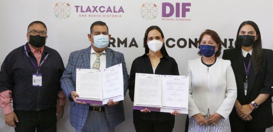 En la firma de convenio estuvieron presentes la directora de Vinculación y el director Jurídico del Icatlax, María de Lourdes Montiel Cerón y Federico Rogelio Domínguez Rivera, respectivamente; y el titular del departamento de Atención a Población de Situación de Vulnerabilidad del Sedif, Alejandro Saucedo Hernández.