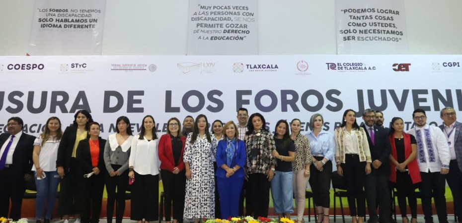 La gobernadora de Tlaxcala, Lorena Cuéllar Cisneros encabezó la clausura de los “Foros juveniles para la integración de la nueva Ley de Personas Jóvenes para el Estado de Tlaxcala”, organizados por la presidenta de la Comisión de Juventud y Deporte del Congreso local, Leticia Martínez Cerón.