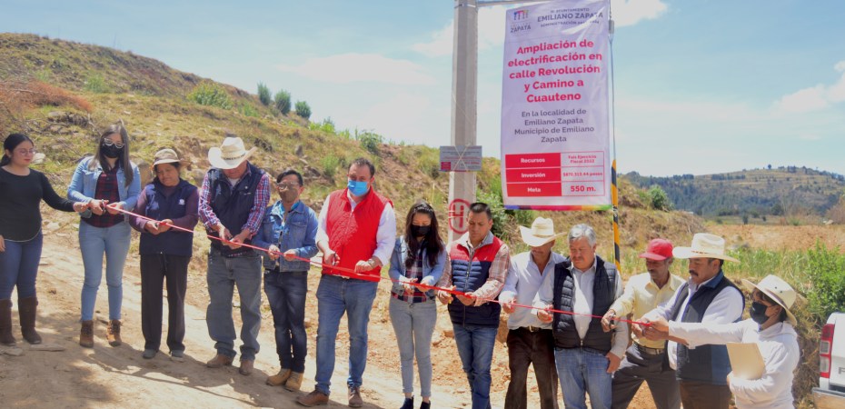 El presidente municipal, Edgar Macías Moreno , realizó la entrega de la obra “Ampliación de electrificación en calle Revolución y camino a Cuauteno”, la cual se realizó con una inversión de $870,313.44 pesos con recursos provenientes del Fondo de Aportaciones para la Infraestructura Social (FAIS) del Ejercicio Fiscal 2022, con la que se beneficiará a más de 40 habitantes de la zona y más de 100 transeúntes indirectos que circulan por estos caminos y que por décadas no contaban con el servicio de luz ni alumbrado público.