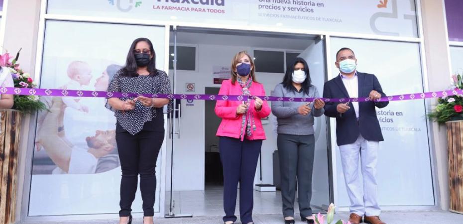La gobernadora Lorena Cuéllar Cisneros realizó el corte de listón inaugural y develación de la placa de una sucursal de la Farmacia de Pensiones Civiles en el municipio de San Pablo Apetatitlán, en la que se invirtieron 2 millones 100 mil pesos en inventario de medicamentos y 235 mil pesos en infraestructura para dicha sucursal que atenderán a 2 mil 800 pensionados, jubilados y trabajadores en activo, con el objetivo de brindar mejores servicios en materia de salud.